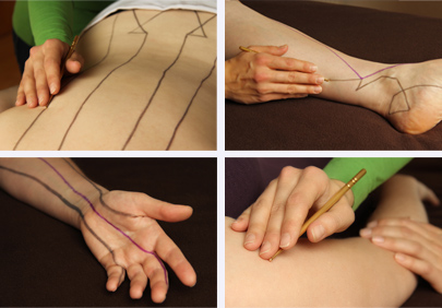 Die Akupunkt-Massage ist eine energetische Massage, die nicht direkt mit den Händen, sondern mit einem Massagestäbchen ausgeübt wird. Durch Ausstreichungen entlang der Meridiane werden mit Hilfe dieses Stiftes zum einen Blockaden auf der körperlichen Ebene gelöst, aber auch Energien von einem energiereichen Meridian dorthin geleitet, wo eine Energieleere besteht (Spannungsausgleich). Blockaden können zum Beispiel durch augenscheinlich harmlose Narben verursacht werden.